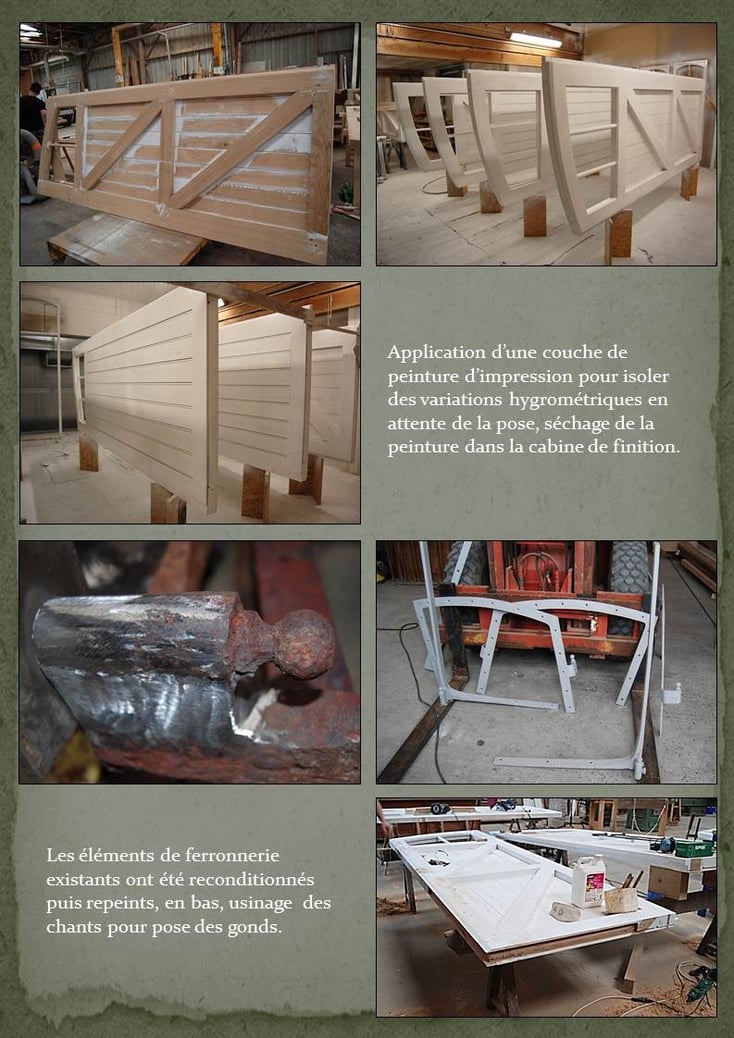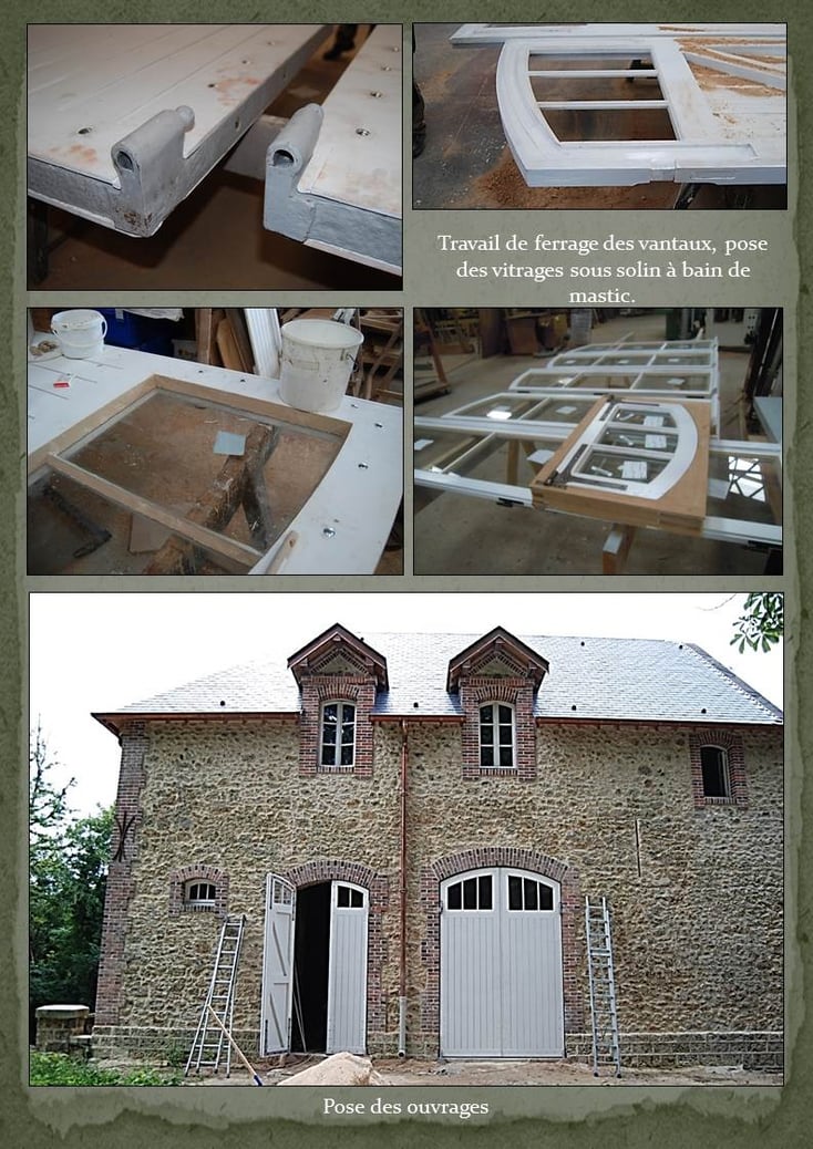 Restauration des bâtiments en 2 phases de travaux comprenant la fabrication de chassis, fenêtres, portes et portails.