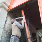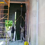 L'imposte en plein cintre a été soigneusement déposée et désassemblée.