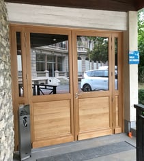 Façon de porte d'entrée en chêne chez un particulier dans le cotentin (50).