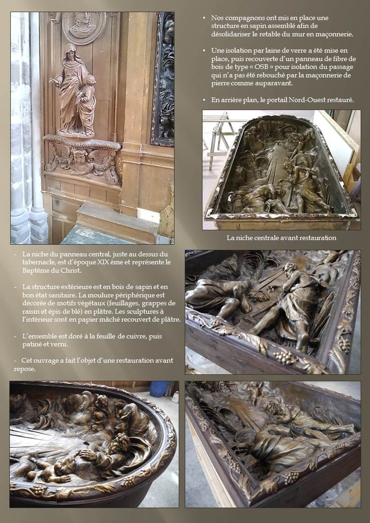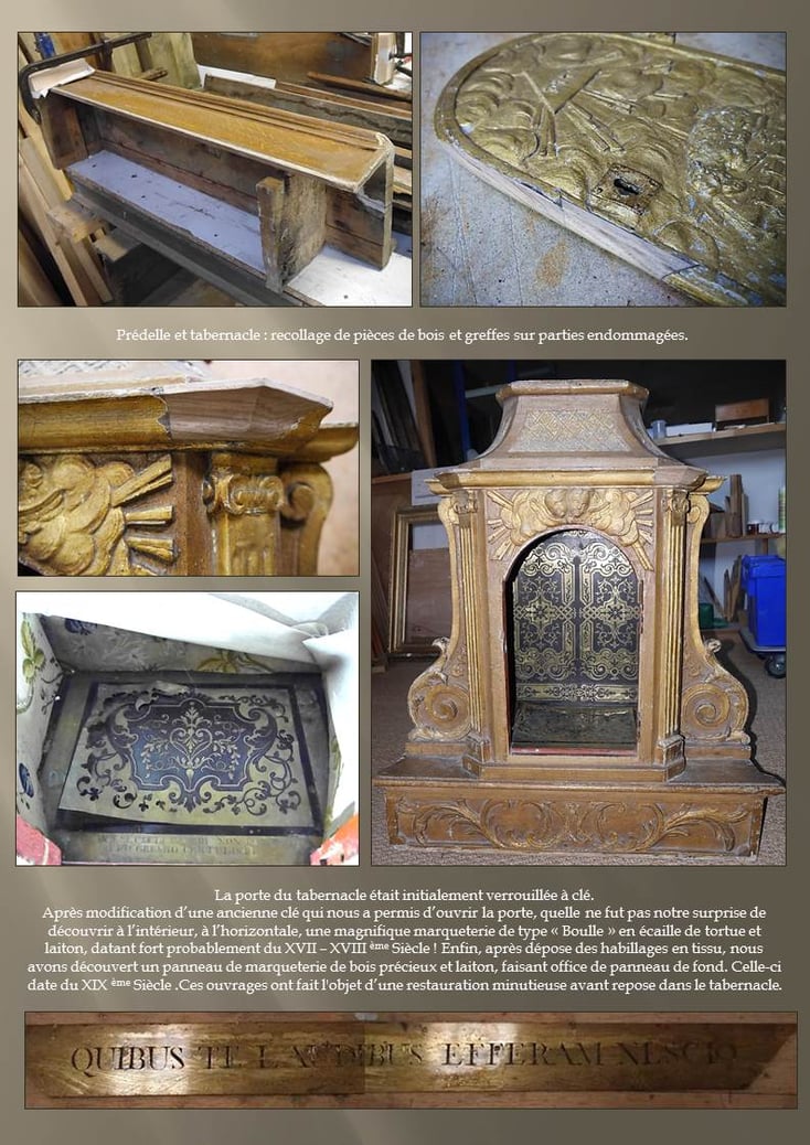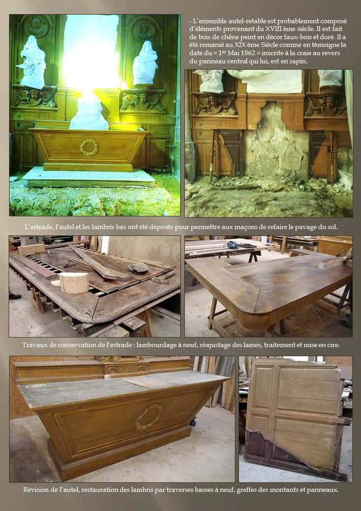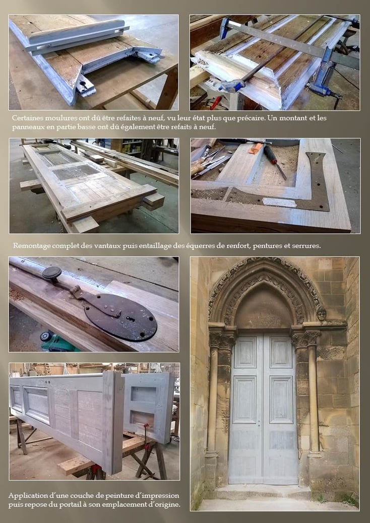 Trappes des cloches, socles de statues, restauration de grilles de communion, marqueteries....