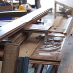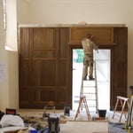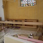 Fabrication d'un Autel en chêne peint, d'un buffet bas et d'une clôture à claire-voie.