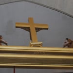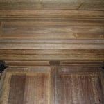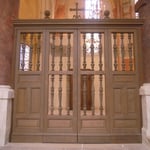 Sacristie : restauration de la porte d'entrée sculptée, restauration et création meubles de sacristie, fabrication d'une Poutre de Gloire.