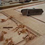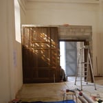Fabrication d'un Sas ou "Tambour d'entrée" en panneaux de chêne lambrissés.