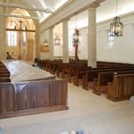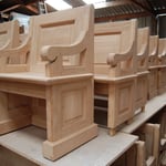 A partir de planches de chêne brut, en passant par le débit, l'usinage, les assemblages, le profilage, la mouluration, le calibrage, le ponçage et bien d'autres étapes encore, nos compagnons ont mis tout en oeuvre pour livrer les quelques 385 places assises initialement prévues !